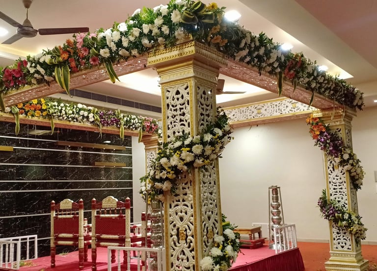 Elegant floral designs for Indian wedding mandaps, tailored to your needs.