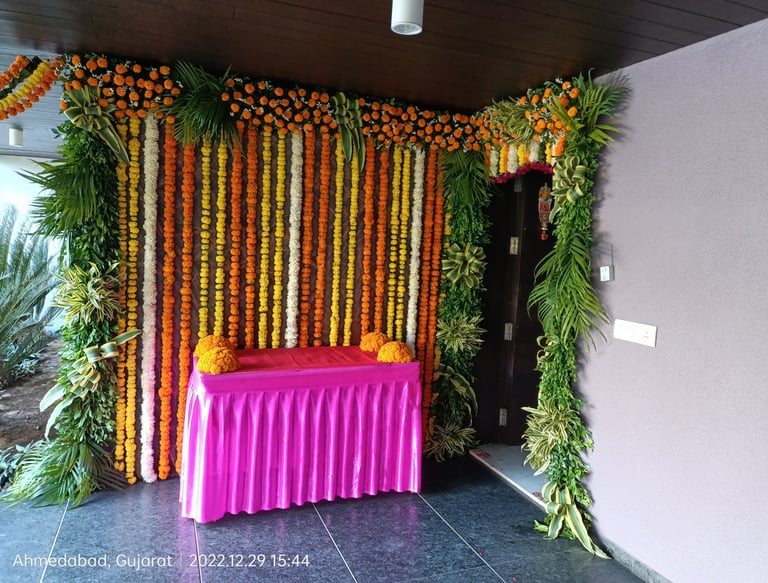 Expert floral services for weddings, events, and home decorations in Ahmedabad.